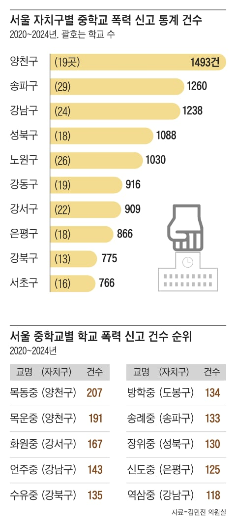 - 강남구, 양천구·송파구에 이어 학폭건수 서울 3위 불명예