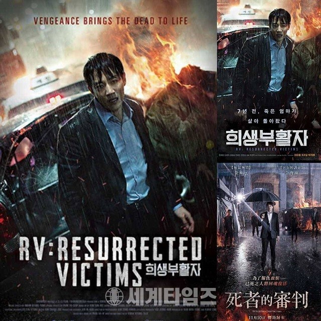 온라인상영관 박스오피스 1위를 차지해 안방극장을 점령한 미스테리 영화 '희생부활자'의 미국, 한국, 대만 포스터가 하나의 포스터로 결합된 사진이 SNS에 올라와 화제가 되고 있다.