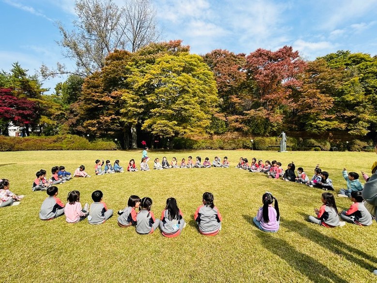 평소 주변 산책에서 볼 수 없었던 넓은 잔디 공원과 알록달록 가을옷을 갈아입은 나무들을 보며 창현유치원 아이들은 마음껏 가을을 느껴볼 수 있었다. 특히 주변의 가을 열매들을 발견하고 “선생님 다람쥐 친구가 와서 먹도록 여기에 밥상을 차려 주어요”라며 열심히 도토리와 밤을 주워 오는 아이들을 보며 교사도 동심으로 돌아가 함께 할 수 있어 행복한 시간이었다. 또 넘어져도 아프지 않은 잔디밭에서 신나게 달리며 ‘무궁화 꽃이 피었습니다. 수건돌리기, 보물찾기 등’을 하니 얼굴에 웃음꽃이 피었다.