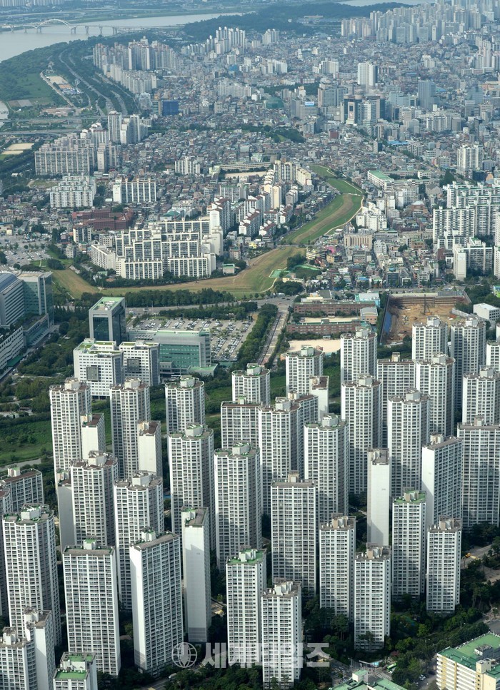 김현미 국토교통부 장관은 지난 2일 정부서울청사에서 부동산 종합대책을 발표해 오늘부터(3일) 서울, 경기도 과천, 세종시가 투기과열지구로 지정돼 주택 대출 한도가 축소되고 재건축과 재개발 지위 양도가 대폭 제한된다고 밝혔다. 사진은 3일 오후 서울 송파구 서울 송파구 롯데월드타워 전망대에서 바라본 서울 시내 아파트 모습. 2017.07.03. 사진제공 뉴시스