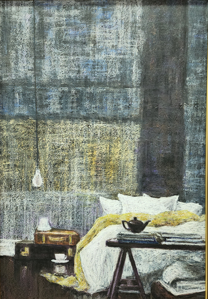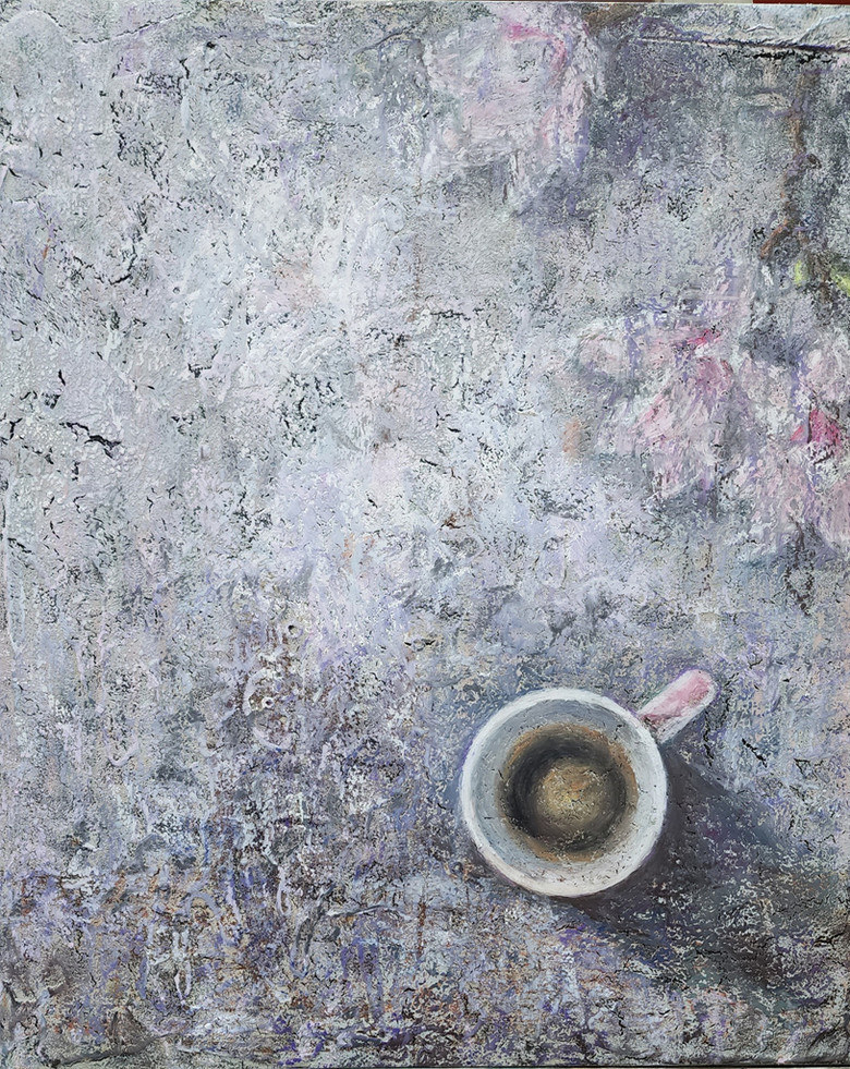 '향기 가득' 그림은 몽환적인 배경의 느낌이 아련한 무언가를 떠올려주며 놓인 찻잔의 향기가 공간을 가득 채운다. 또한 향기에 취해 그 사람과 함께 마주 앉아 차를 마시며 잔잔한 행복의 시간을 만든다. 그릇과 공간의 배경 그리고 여백과 채움의 미학이 화면 가득 채워져 평화로운 아침 호수를 바라보듯 힐링의 기운이 대단하다.