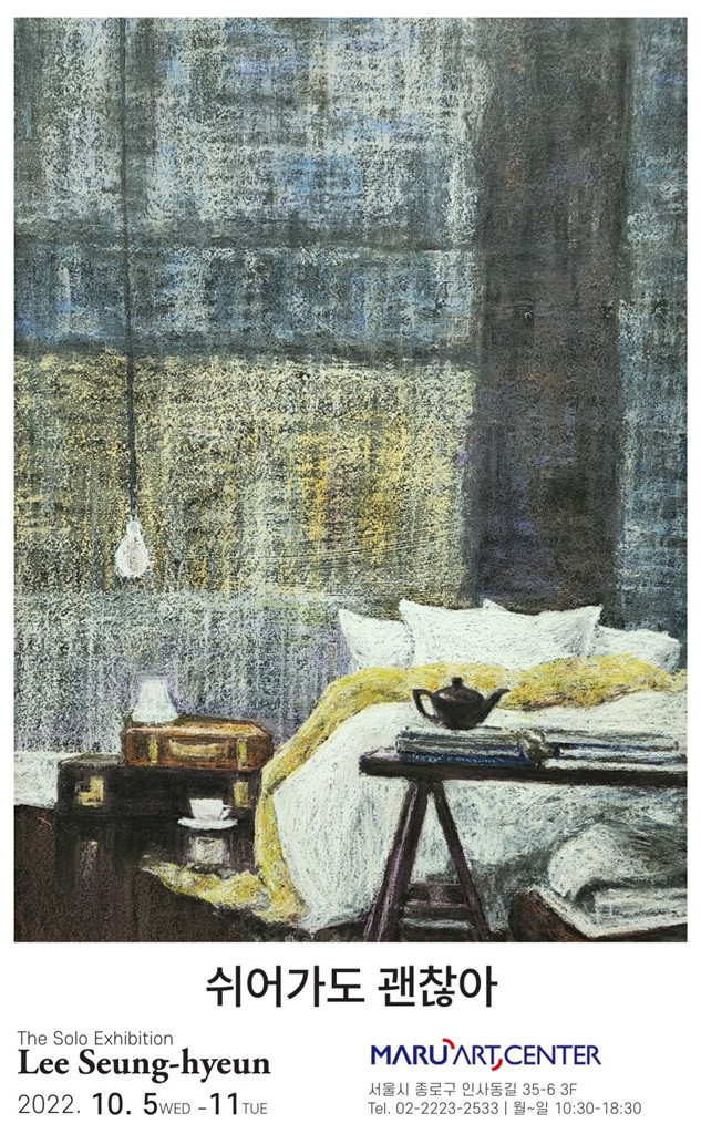 "쉬어가도 괜찮아" 개인전을 진행하는 이승현 작가는 "코로나19의 어려운 시기를 오히려 작품을 구상하고 작업하는 기회로 만들어 그림이 주는 안정감을 즐겼으며. 전시를 통해 관람객들이 그림으로 행복감을 얻는 휴식의 공간을 제공하여 자신을 소중하게 생각하는 뜻 깊은 시간을 선사하고 싶다."고 말했다. 동덕여대 미술학부 회화과 졸업 출신으로 현재 한국미술협회 회원으로서 그릇을 매개체로 다양한 인생 여정을 진지하게 때로는 재미있는 이미지로 감상자의 공감을 얻는 작품 활동을 활발하게 진행 중에 있다.