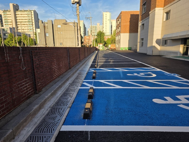 학교 주차장의 보도블록을 아스콘 포장으로 교체해 요철 및 침하 문제를 개선하고, 배수로를 설치해 노면 결빙으로 인한 사고 위험을 최소화했다.