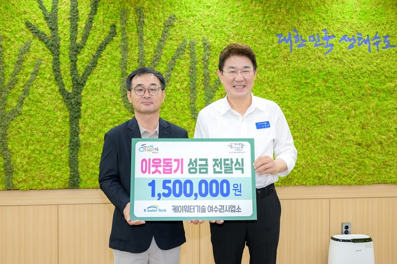 [순천시 세계타임즈=우덕현 기자] 순천시(시장 노관규)는 지난 16일 K-water기술 여수권사업소(소장 강진성)에서 이웃돕기 성금 150만원을 기부했다고 밝혔다.