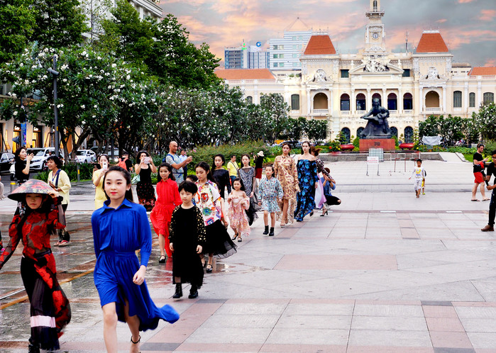 사진설명 : 호치민 인민청사 앞 광장에서 펼쳐진 박정상 디자이너의 게릴라 패션쇼.