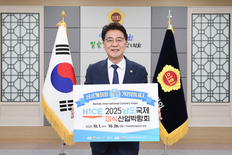 이날 김 의장은 “남도의 핫한 먹거리와 특별한 경험이 오는 10월 목포에서 펼쳐진다”며 “남도의 맛과 멋이 세계로 향하는 ‘2025 남도국제미식산업박람회’가 도민 여러분과 함께 성공적으로 개최되기를 기원한다”고 말했다.