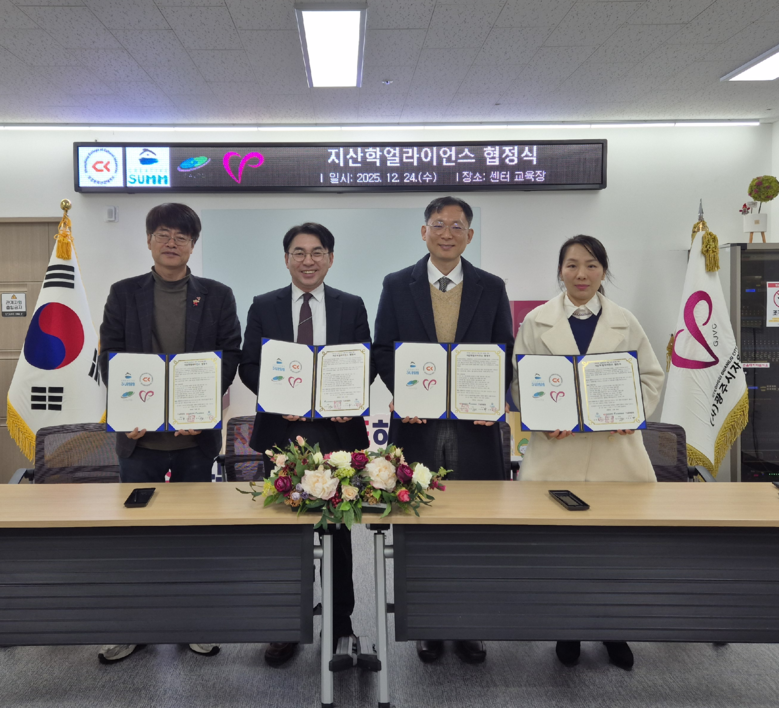 ㈜크리에이티브섬(대표 조혜승), (사)광주시자원봉사센터(이사장 방세환)은 지역 혁신과 포용적 성장을 목표로 지. 산. 학 협력 강화를 위해 2025.12.24.(수) 11시 광주시자원봉사센터 교육장에서 업무협정을 체결하였다.