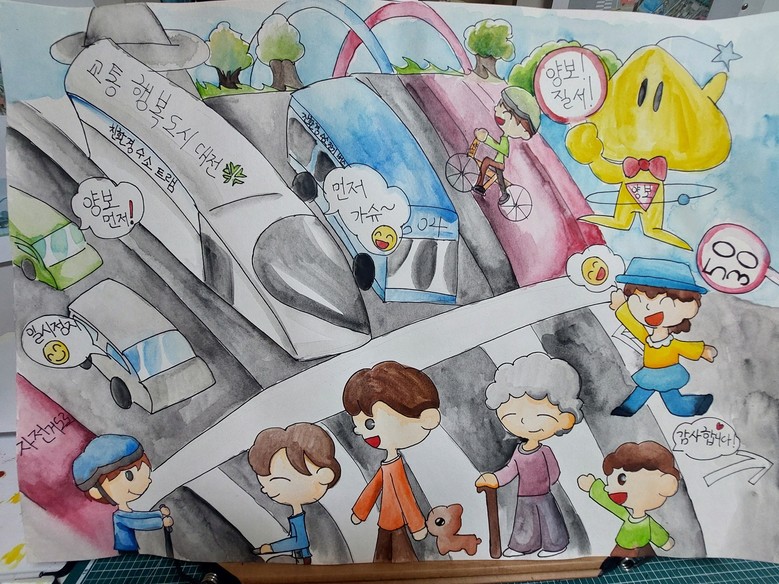 올해 주제인 ‘수소트램과 사람, 자동차가 공존하는 교통도시’는 대전시가 추진 중인 친환경·미래형 교통정책을 반영한 것으로, 아이들이 상상하는 사람 중심의 교통문화와 도시의 미래상을 자유롭게 그릴 수 있도록 했다.