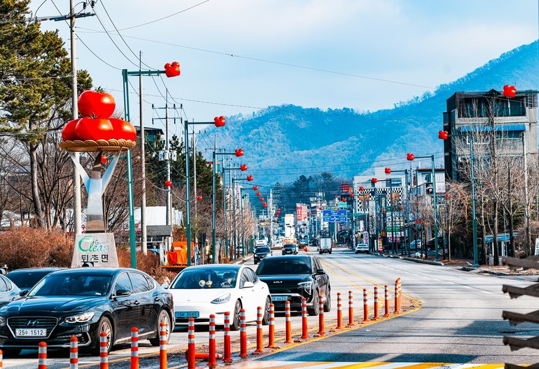 가로등 상단에 설치된 토마토 모형은 낮에는 조형물로서 친근한 느낌을 연출하고 야간에는 은은하고 따뜻한 빛을 발하는 경관 조명으로 활용된다. 이를 통해 마을 경관의 완성도를 높이는 동시에 지역 인상을 자연스럽게 각인시키는 효과가 기대된다.