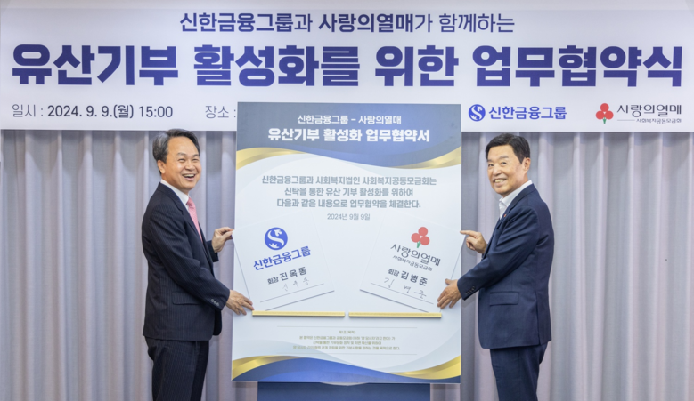 신한금융은 이번 업무협약을 통해 고객들에게 다양한 방식의 상속 솔루션을 제공하고, ‘신한 유언대용신탁’에 가입한 고객들이 향후 자산 상속 시 사전에 정해놓은 비율만큼 사회복지공동모금회에 기부하는 것을 독려할 계획이다.