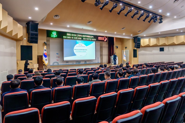 [오산시 세계타임즈=송민수 기자] 오산시(시장 이권재)는 지난 5일 시청 대회의실에서 시 및 유관기관 고위직 70여 명이 참석한 가운데 ‘2025년 오산시 고위직 별도 4대 폭력 예방교육’을 실시했다고 밝혔다.