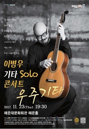 23일(목) 이병우 기타 솔로 콘서트 ‘우주기타’ 공연은 해운홀에서 저녁 7시 30분에 개최된다. 2016년, 13년만에 발매한 솔로 앨범 ‘우주기타’의 수록곡뿐만 아니라 대표적인 영화 음악들로 감동을 선사할 예정이다.