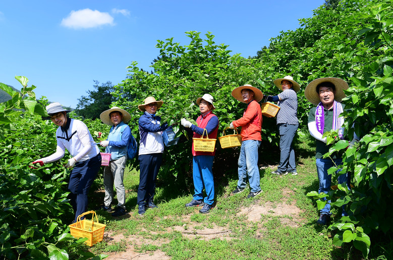 김진부 의장을 비롯한 도의원 및 의회사무처 직원 100여명은 진주에 위치한 오디재배 농가를 찾아 초여름의 무더운 날씨에도 오디 수확과 뽕잎 수확에 구슬땀을 흘렸다.