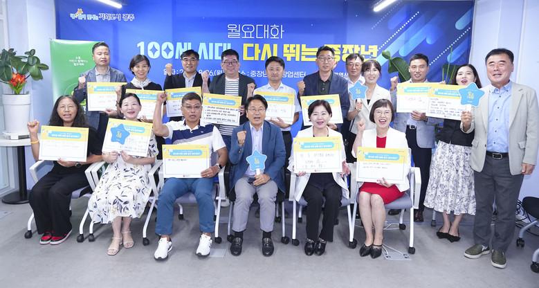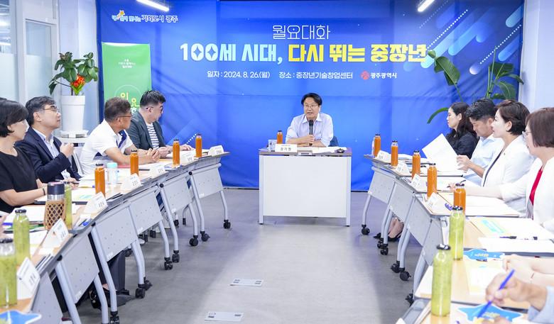 월요대화에는 강기정 시장을 비롯해 이은경 빛고을50+센터 회원, 정주영 빛고을50+센터 서포터즈, 임순분 중장년내일센터 회원, 오경미 양파컴퍼니 대표, 추말숙 문화예술공동체 연나무 대표, 안웅섭 노런드리 컴퍼니 대표, 양선주 첨단1동 주민, 박미정 광주시의회 의원, 이명숙 노사발전재단 광주중장년내일센터 센터장, 차혁렬 광주중장년기술창업센터 센터장, 이진로 국민연금공단 광주지역본부 노후준비서비스팀장, 김원준 광주인재평생교육진흥원 사무처장, 김민석 친고령산업지원 사회적협동조합 이사장, 손옥수 광주시 복지건강국장이 참석했다.