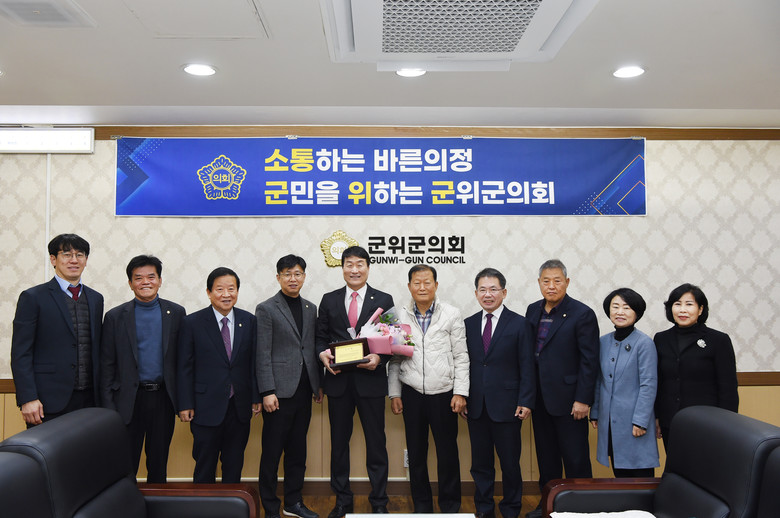 박노진 한국농아인협회 대구광역시협회장은 “지역민을 위한 현장 의정에 앞장서면서도 어려운 이웃을 위한 복지 발전과 사회 참여를 위해 노력해주신 군위군의회에 고마운 마음을 담아 감사패를 수여한다.”고 말했다.