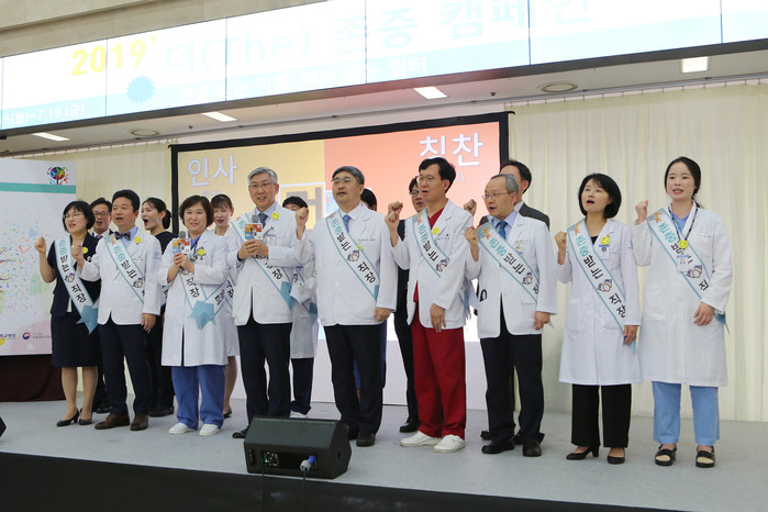 강동경희대학교병원(의무부총장 김기택)은 7월 17일(수) 존중과 배려가 있는 직장문화 조성을 위한 ‘2019 더(THE)존중 캠페인’ 행사를 가졌다.