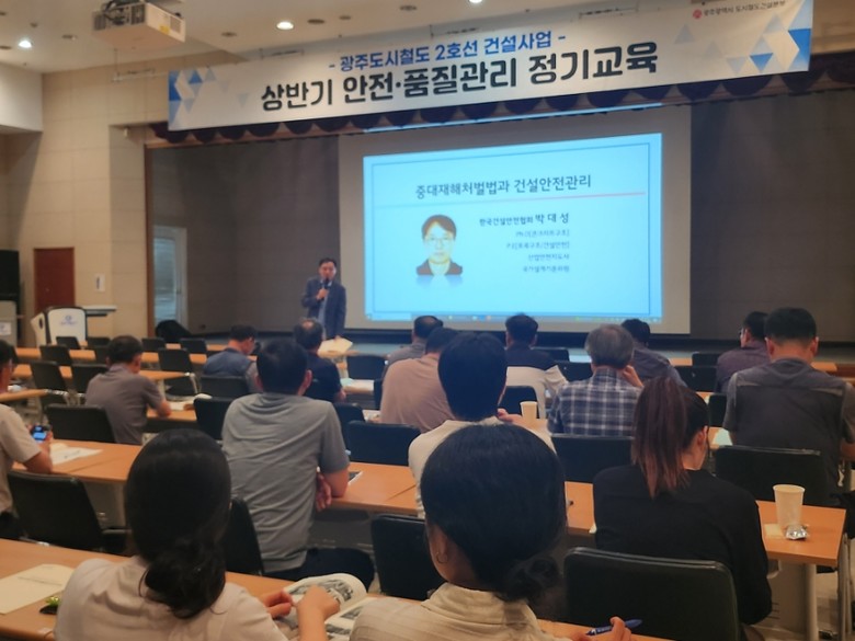 [광주 세계타임즈=손권일 기자] 광주광역시 도시철도건설본부는 9~10일 이틀간 광주교통공사와 인재교육원에서 도시철도 2호선 건설 공사 관계자를 대상으로 ‘2025년 상반기 안전·품질관리 정기교육’을 진행했다.