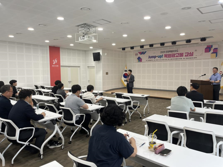 [강원도 세계타임즈=김민석 기자] 강원특별자치도(도지사 김진태)는 옥외광고물에 대한 올바른 인식을 확산하고, 관련 업무를 담당하는 공무원의 직무역량 강화를 위해 7월 2일(수), 춘천 강원디자인진흥원에서 2025년 「점프-업(Jump-up)! 옥외광고물 교실」을 개최했다고 밝혔다.