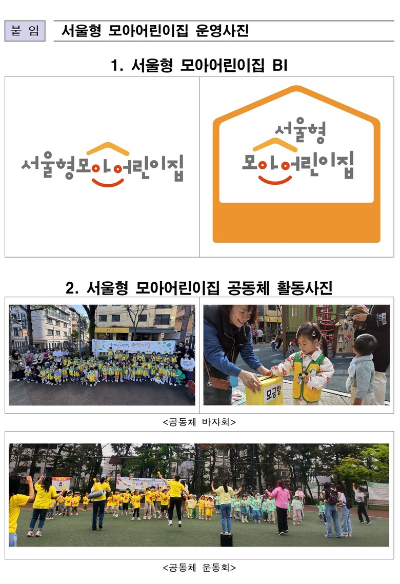 ‘서울형 모아어린이집’은 도보 이용권에 있는 3~5개 국공립·민간·가정어린이집 등이 공동체를 구성해 입소 대기를 공동으로 조정하고 보육프로그램 운영, 교재·교구 활용을 공동 추진하는 신 보육모델이다.