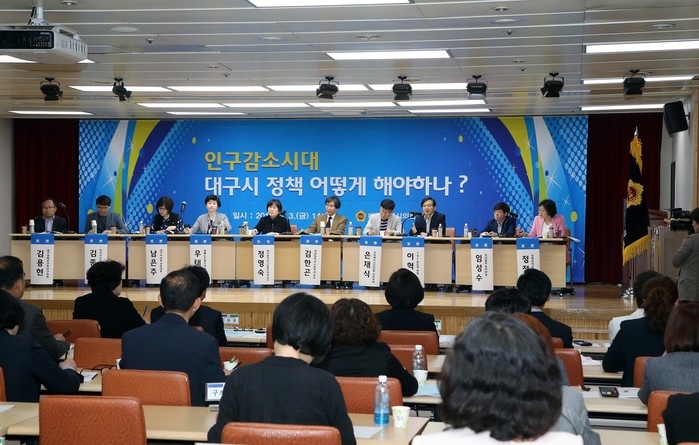 토론에 앞서 배지숙 의장을 비롯한 대구시의원은 ‘인구가 미래다’, ‘아이가 희망이다’, ‘대구시의회가 함께 하겠습니다.’라는 구호로 인구정책 퍼포먼스를 펼칠 예정이다.