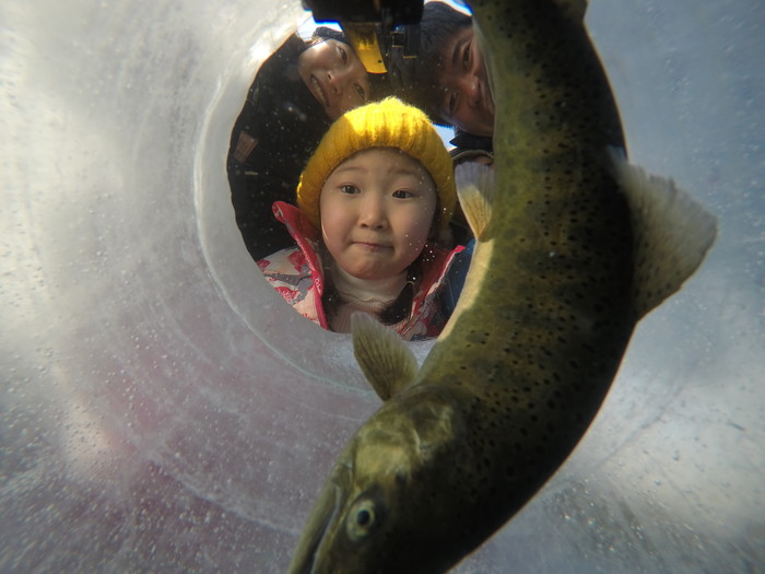 [화천군=세계타임즈 김민석 기자] 12일 화천산천어축제장을 찾은 가족이 산천어 얼음낚시를 즐기며 즐거운 추억을 쌓고 있다.