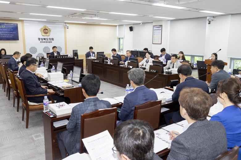 [경북 세계타임즈=한성국 기자] 경상북도의회 문화환경위원회(위원장 김대일)는 6월 15일 제340회 경상북도의회 제1차 정례회 제1차 문화환경위원회를 열어 문화관광체육국, 환경산림자원국, 보건환경연구원 소관 ‘2022회계연도 경상북도 결산 및 예비비지출 승인의 건’과 7건의 조례를 심사했다.