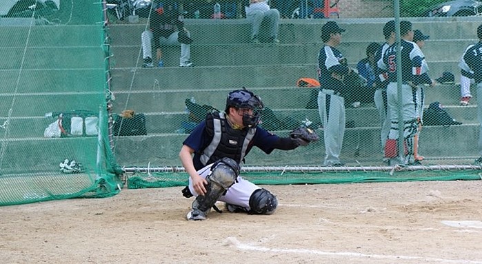 | ▲각종 보호장비를 착용하고 있는 포수의 모습 |