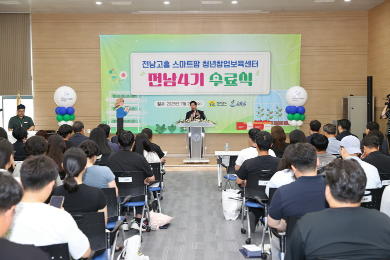 [고흥군 세계타임즈=우덕현 기자] 고흥군(군수 공영민)은 지난 23일 전남 고흥 스마트팜 청년창업 보육센터 전남 4기 교육생 47명의 수료식을 성황리에 개최했다고 밝혔다.
