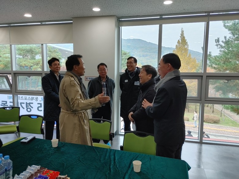 | ▲(사진설명)31일 의정부컬링경기장에서 손학규 전 경기도지사와 이원성 경기도체육회장 및 행사관계자들이 20년만에 재개된 경기도동계체육대회를 축하하며 담소를 나누고 있다. |