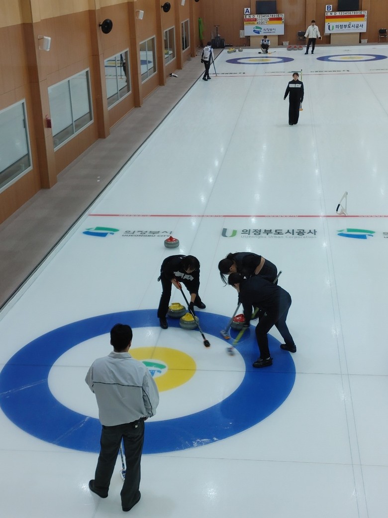 | ▲의정부 컬링경기장에서 일반 준결승전(레드스톤즈 vs이서아빠와삼촌들)이 열리고 있다. |