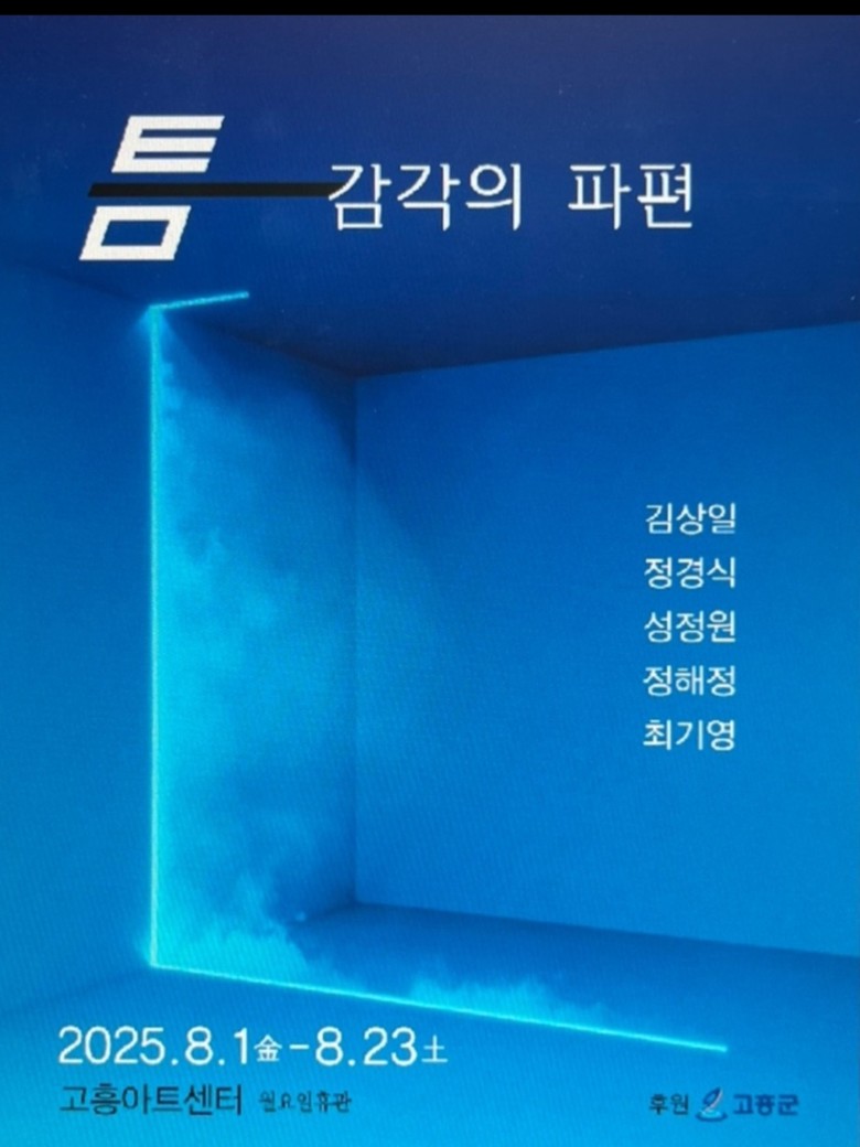 오는 8월 1일부터 전시되는 5인 그룹전 <틈, 감각의 파편>에는 고흥에서 활동하는 정해정 작가를 비롯해, 타지에서 활동 중인 김상일, 정경식, 성정원, 최기영 작가가 함께 참여해 회화, 영상, 조각, 설치작품 등으로 고흥의 자연과 정서를 바탕으로 제작한 작품 40여 점을 선보일 예정이다.