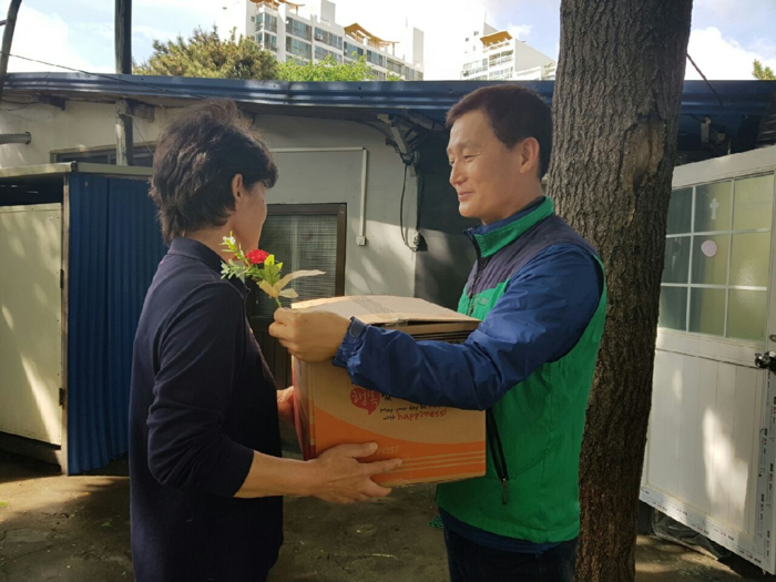 휴일 오늘 이맘때면 매년소외계층 어르신분들께 카네이션과 생필품등을 전달하는데 그럴때마다반가움과 고마운 눈빛에 늘 감사함을 느끼며 더불어 함께 나누며 살아가려는우리 봉사회원분들께도 행복이 가득하기를 바램해본다