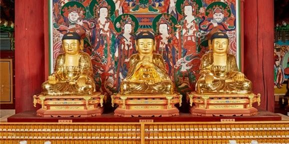 - 삼척 영은사 대웅보전에 주불로 봉안되어 있는 석조비로자나삼불좌상은 본존에 비로자나불, 좌협시는 약사불, 우협시는 아미타불의 삼불좌상으로 구성되어 있다.