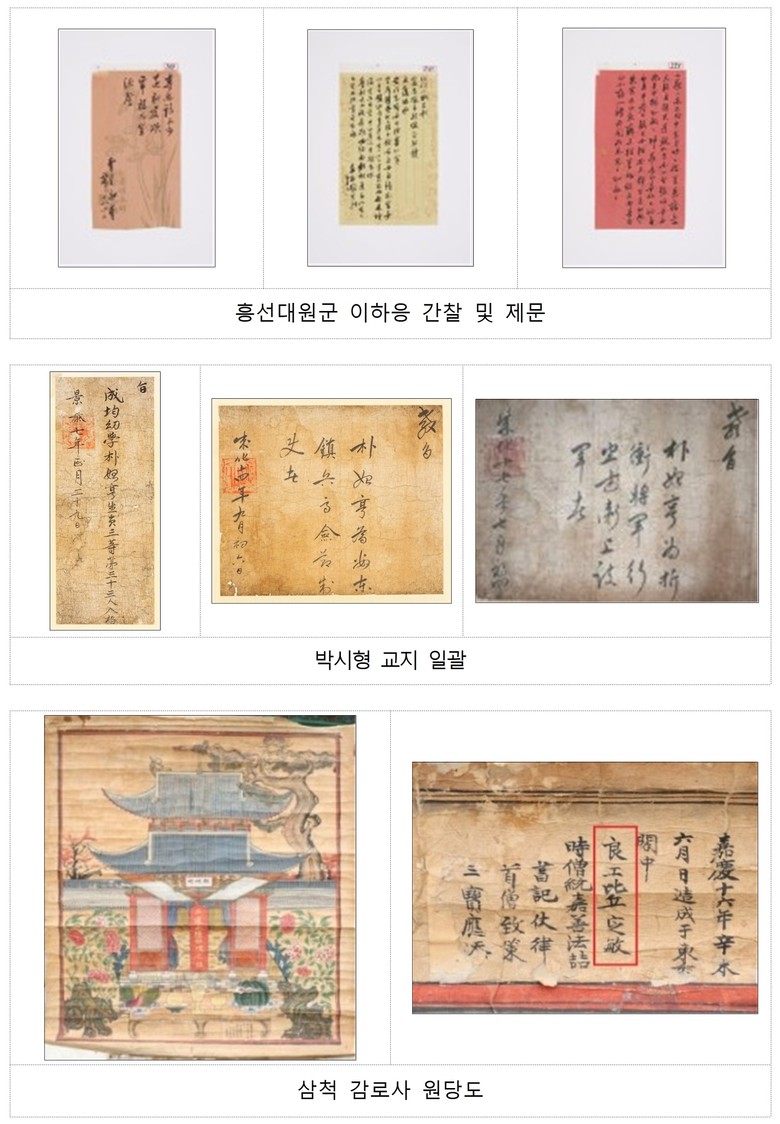 - (유형문화유산) 삼척 영은사 석조비로자나삼불좌상, 삼척 신흥사 석조석가여래삼존좌상, 흥선대원군 이하응 간찰 및 제문, 박시형 교지 일괄