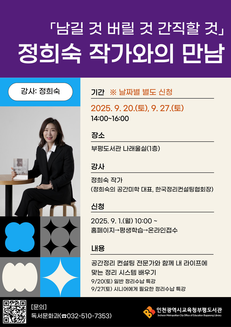 한편, 부평도서관은 9월 한 달간 ‘읽기예보: 오늘 읽음, 내일 맑음’을 주제로 다양한 공연, 체험 강좌, 이벤트를 운영한다.