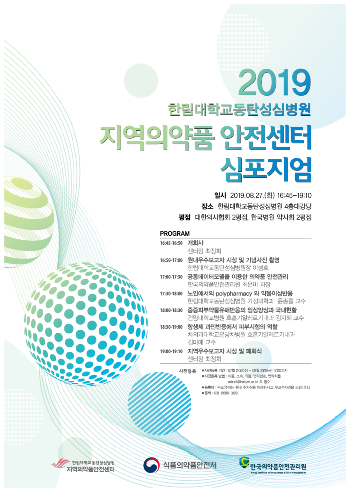 한림대학교동탄성심병원은 2018년 한국의약품안전관리원에서 지정하는 지역의약품안전센터 사업기관으로 선정된 이래 약물부작용 보고.홍보.교육을 통해 지역사회의 안전한 약물사용에 기여하고 있다. 이번 지역의약품안전센터 심포지엄은 참가자들에게 의약품 안전관리의 최신 경향 및 약물부작용에 대한 전반적인 이해를 돕고자 마련됐다.