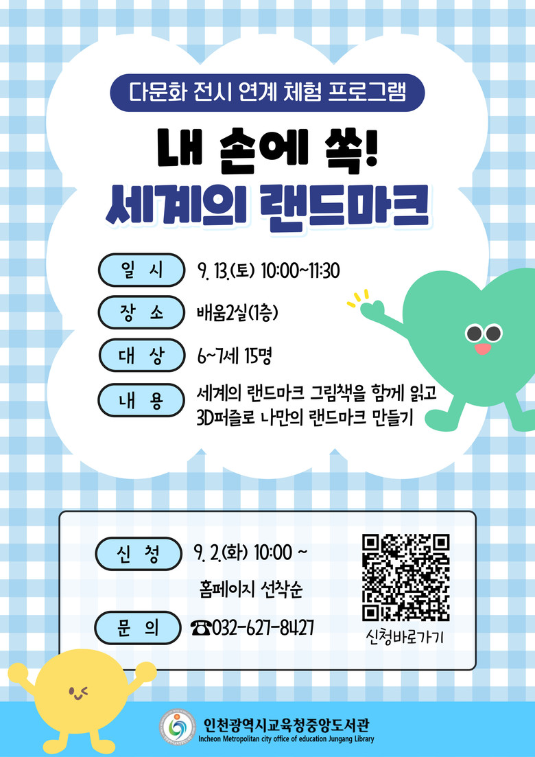 이번 프로그램은 아동을 대상으로 세계의 랜드마크 그림책을 함께 읽고, 3D퍼즐을 활용해 에펠탑, 피사의 사탑 등 나만의 랜드마크를 만드는 체험을 진행한다.