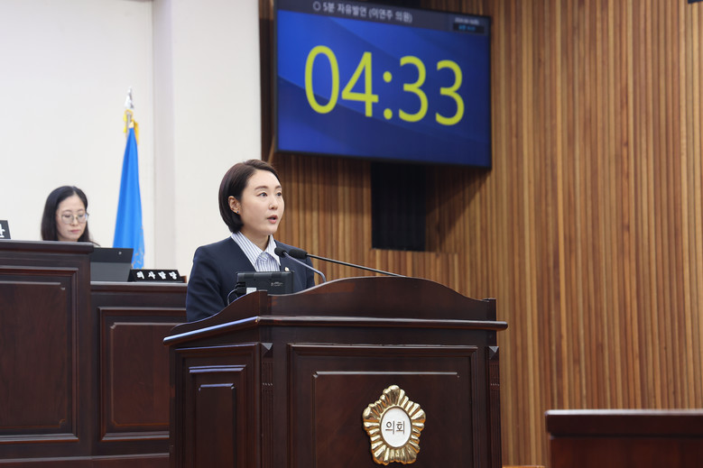 이연주 의원은 논현동 인조잔디 축구장 조성공사와 녹색복지숲 생태체험장 보수지연 등 남동구 내 여러 관급공사의 부실시공 및 늑장대처의 사례를 들며 공공재정의 낭비와 시민들의 안전을 우려했다.