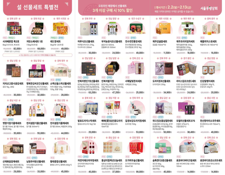 - 농특산물, 설 선물세트를 최대 30% 할인된 가격으로 서울동행상회 온·오프라인에서 판매
