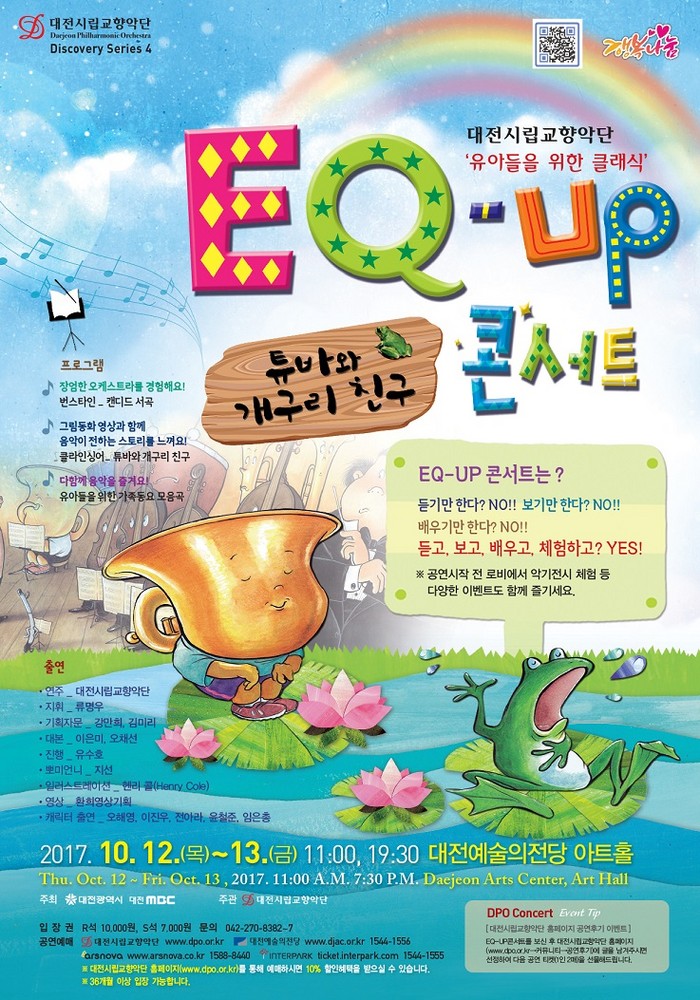 대전시립교향악단은 10월 12일과 13일 이틀간 오전 11시와 오후 7시 30분 대전예술의 전당 아트홀에서 유아들의 감성(EQ)을 업(UP)시켜 줄 수 있는 색다른 무대를 선보인다고 밝혔다.