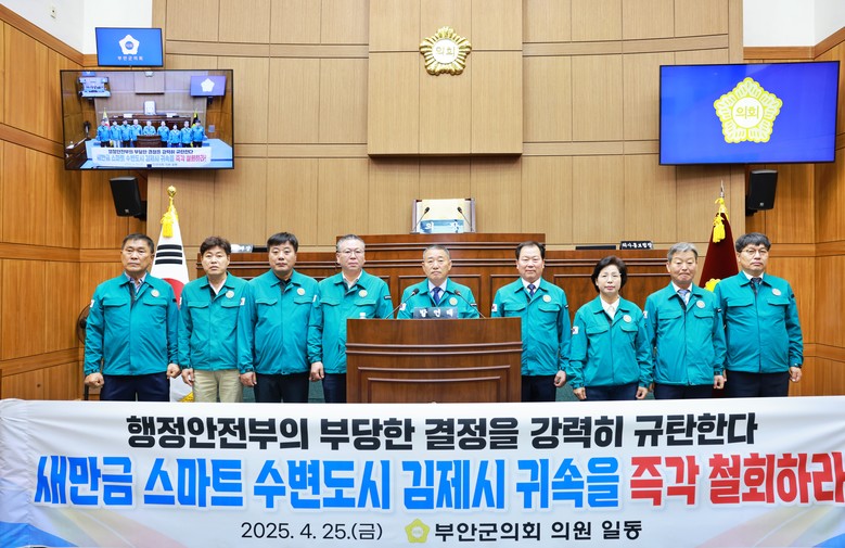 부안군의회, 새만금 스마트 수변도시 관할권 결정 규탄 성명서 발표