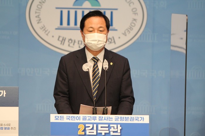 [세계타임즈 이진화 기자] 김두관 더불어민주당 대선 경선 후보가 2일 오전 서울 영등포구 여의도 국회 소통관에서 기자회견을 열고“수도권 일극 체제로 몸살을 앓고 있는 대한민국을 국민 모두 행복한 균형분권국가로 완전히 개조하겠다”며 ‘5극2특 초광역 다극 체제 국가전략’을 발표했다.