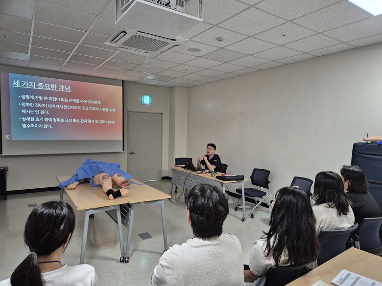 이번 교육은 성가롤로병원 권역응급의료센터의 김재혁 센터장을 비롯해, 이두환 주임과장, 노종갑 응급중환자실장, 그리고 순천소방서 남윤길 소방위가 주 강사로 참여해 전문성과 실전성을 동시에 확보했다. 또한 응급실 경력간호사를 포함한 의료진 8명이 시뮬레이션 실습 강사로 배치되어, 실제 현장과 동일한 환경에서 의료진과 응급의료종사자의 능력 향상을 돕는 데 핵심적인 역할을 수행했다.