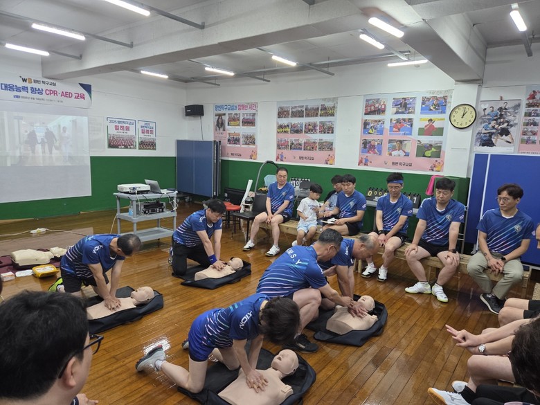 [세계타임즈]최성룡기자 = 이재란 (창원시 탁구협회 부회장)은 지난 14일 오후 12시부터 신월동 왕빈탁구 교실에서 회원과 지역주민을 대상으로 김성용 전문강사 (대한산업안전협회 창원지회장)를 초빙 CPR.AED 교육을 실시하였다.
