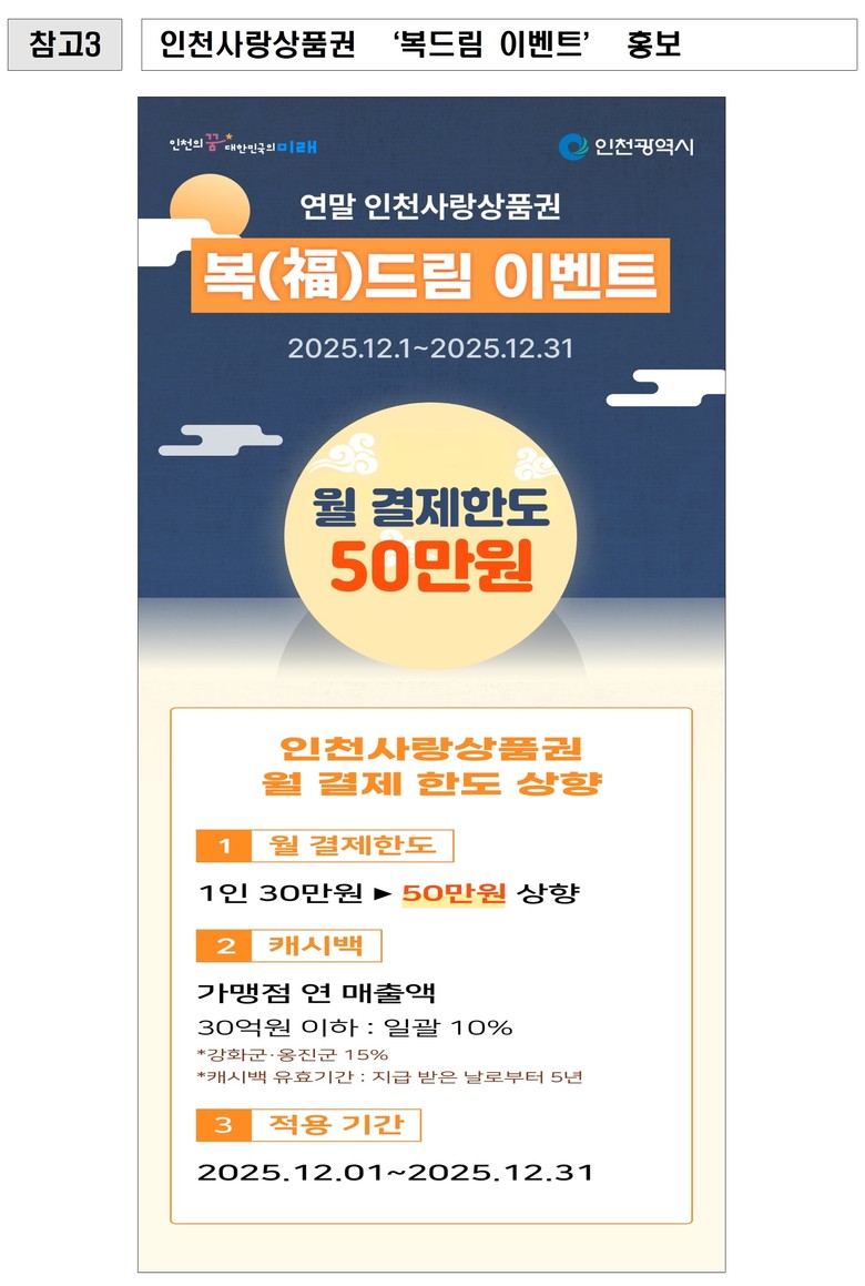 이용자 캐시백 증가(강화.옹진군 45천 원→75천 원 / 자치구 30천 원 →50천 원)