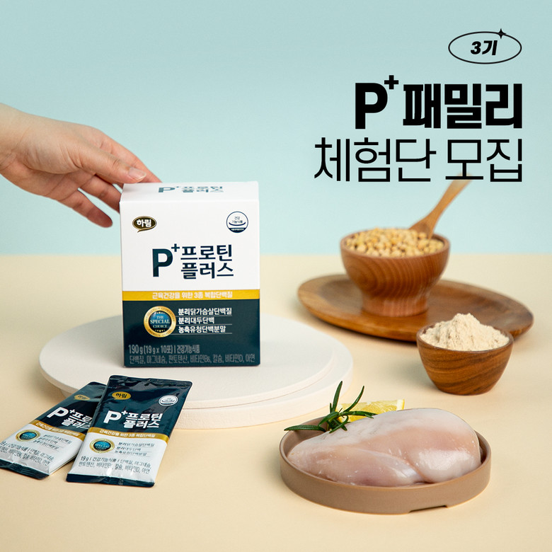 ‘피플러스 프로틴플러스’는 분리닭가슴살단백질에 농축유청단백분말과 식물성 분리대두단백까지 3종 복합 단백질을 균형 있게 설계한 제품이다. 체내에서 합성되지 않아 식품으로 섭취해야 하는 필수 아미노산 9가지가 모두 들어있는 완전단백질 제품이며, 7대 영양 기능성(단백질·마그네슘·판토텐산·비타민B6·칼슘·비타민D·아연) 설계로 근육, 뼈, 정상적인 면역기능까지 고려한 건강기능식품이다.