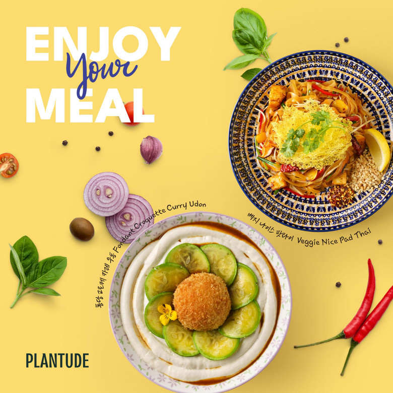 플랜튜드는 봄을 맞아 신메뉴로 아시안 누들 2종 △‘베지 나이스 팟타이(15,900원)’, △‘퐁당 고로케 카레우동(14,900원)’을 선보인다.