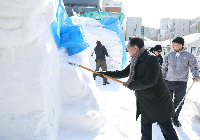 개막식 참석 후 이 시장은 한국 대표로 제50회 국제설상조각대회에 참석한 박영수, 윤유담, 김진 작가를 격려했다.