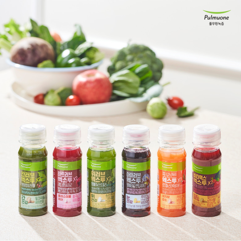 풀무원녹즙은 융복합 건강기능식품 1호 ‘칸러브 엑스투(간 건강 건기식과 국내산 유기농 명일엽 녹즙을 담은 제품)’ 인기에 힘입어 2호 ‘하트러브 엑스투(콜레스테롤 케어 건기식과 레드비트와 당근으로 설계한 녹즙을 담은 제품)’, 3호 ‘아이러브 엑스투(눈 건강 건기식과 안토시아닌 함량 보증 빌베리 녹즙을 담은 제품)’, 4호 ‘위러브 엑스투(위 건강 건기식을 국내산 유기농 양배추와 브로콜리 생즙을 담아 설포라판 함량을 보증하는 녹즙으로 설계한 제품)’, 5호 ‘핏러브 엑스투(체지방감소 도움을 주는 건기식과 고식이섬유 로즈힙&스타루비자몽 녹즙으로 설계한 제품)’, 6호 ‘비타맥스 엑스투(한국인 맞춤 멀티비타민 건기식으로 과 유기농 24가지 채소&과일 녹즙을 담은 제품)’를 연이어 선보이며 융복합 제품 라인업을 확대하고 소비자의 선택폭을 넓혀왔다. 특히 건강에 관심이 많은 3040 소비자들로부터 큰 인기를 얻으며, 지난 9월 누적 판매량 900만 병에 이어 출시 2년 만인 11월 누적 판매량 1천만 병의 성과를 달성했다.