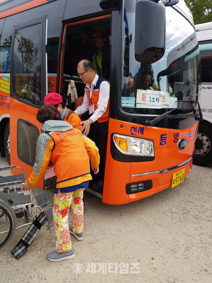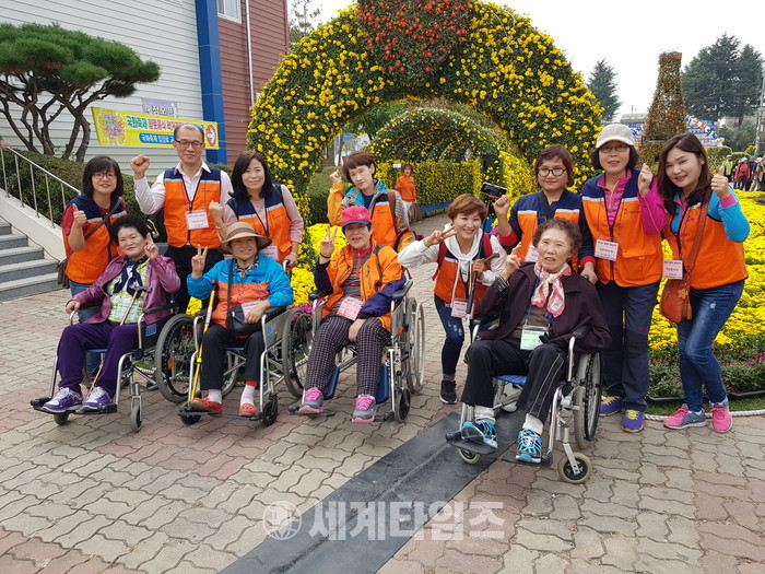 이날 봉사에는 유희자 나눔봉사단장을 비롯해서 회원 13명이 버스 6대로 출발한 익산 송광사와 익산 중앙체육공원 국화축제 행사장까지 동행하면서 휠체어 밀어주기, 말벗봉사 등을 하면서 장애인분들과 좋은 시간을 보냈다.